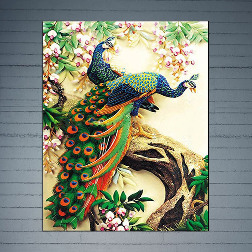 Digital Diy Paint Number Kit Peacock Oil Painting On Canvas Wall Artwork Gift Shopee Singapore